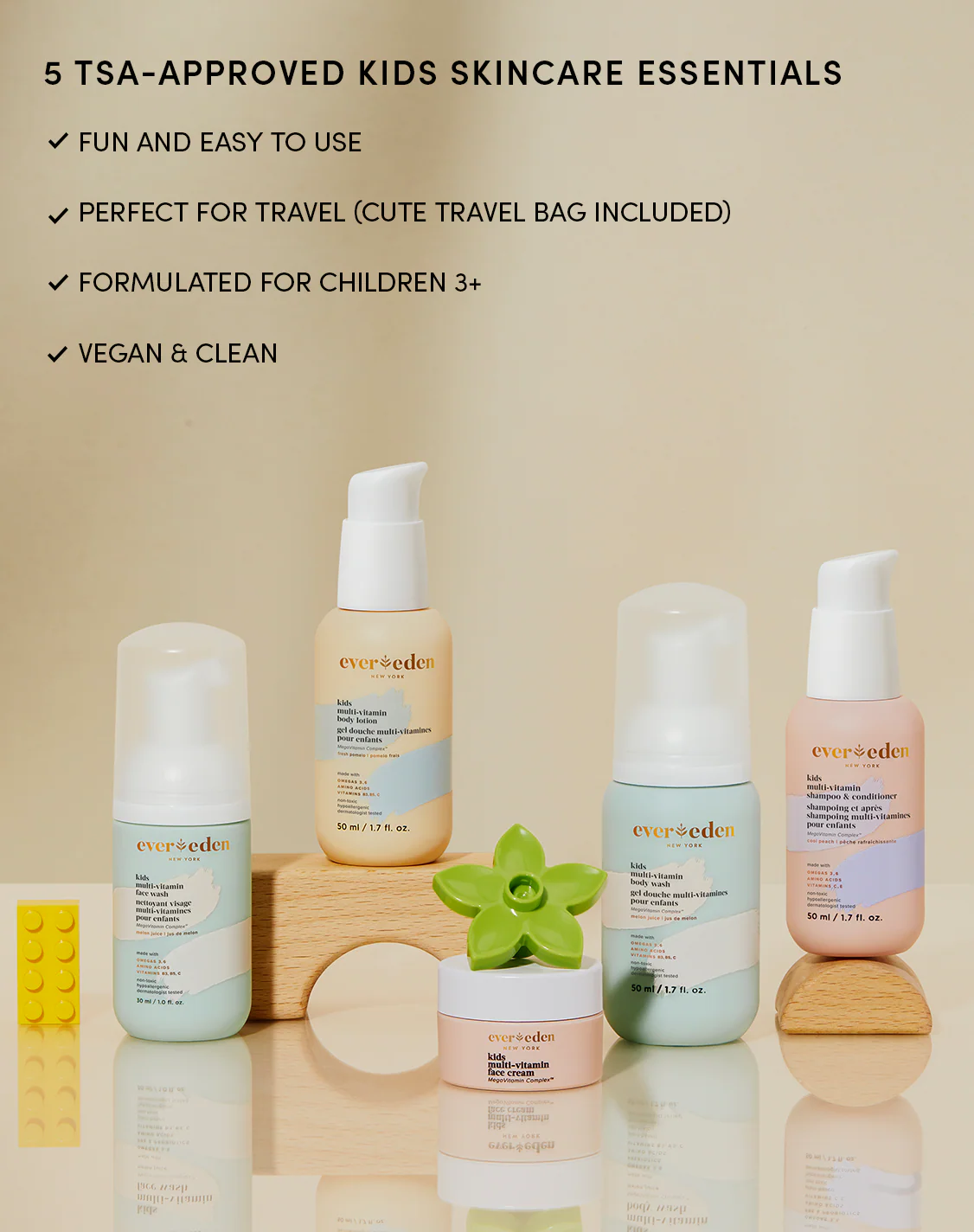 - Decant nothing. Minis in the Evereden Kids Complete Routine Travel Set are already small, which reduces spill risk and speeds TSA checks.