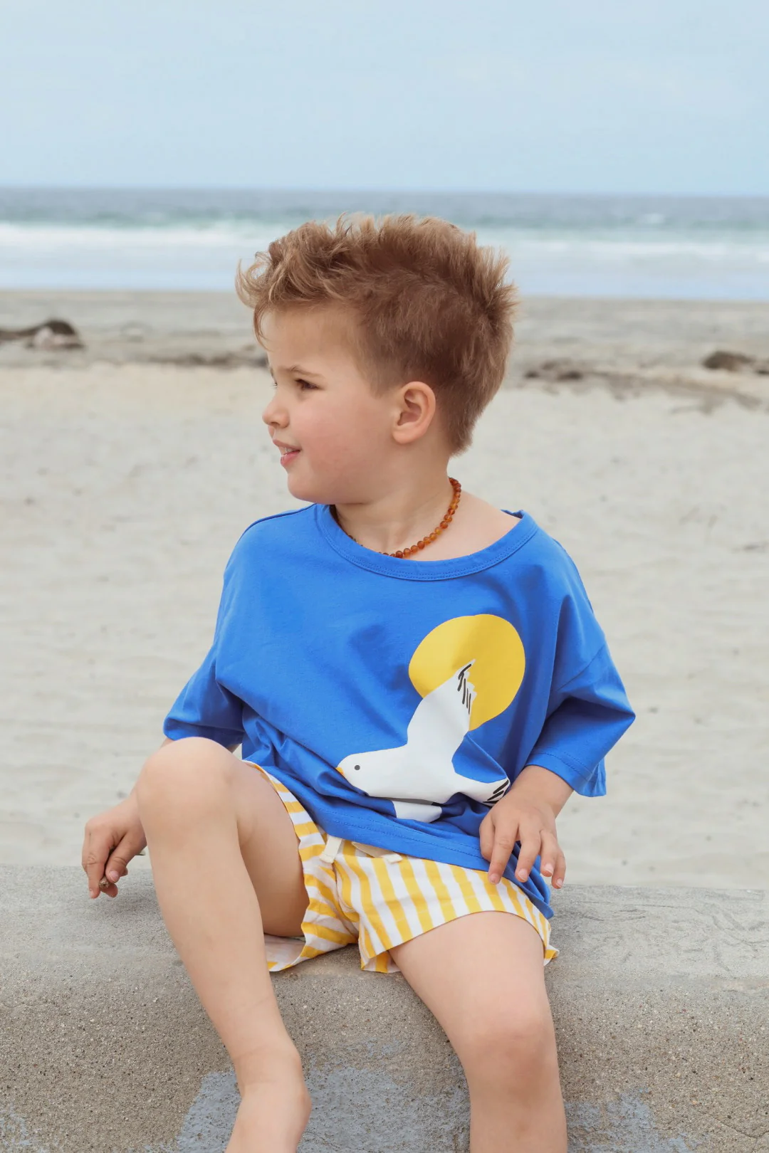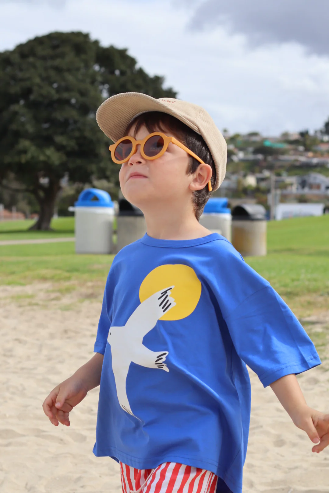 A great kids’ tee has three jobs: feel soft on skin, look fun without being fussy, and pair with 90% of the closet. The Seagull T-shirt hits that sweet spot. The graphic is playful but not shouty, so it works with patterned shorts or neutral joggers. The crew neck is flexible for easy on/off (important when dressing energetic toddlers), and the sleeves are cut to roll once for growth without looking sloppy. For parents, that means fewer outfit battles and more “grab-and-go” mornings.