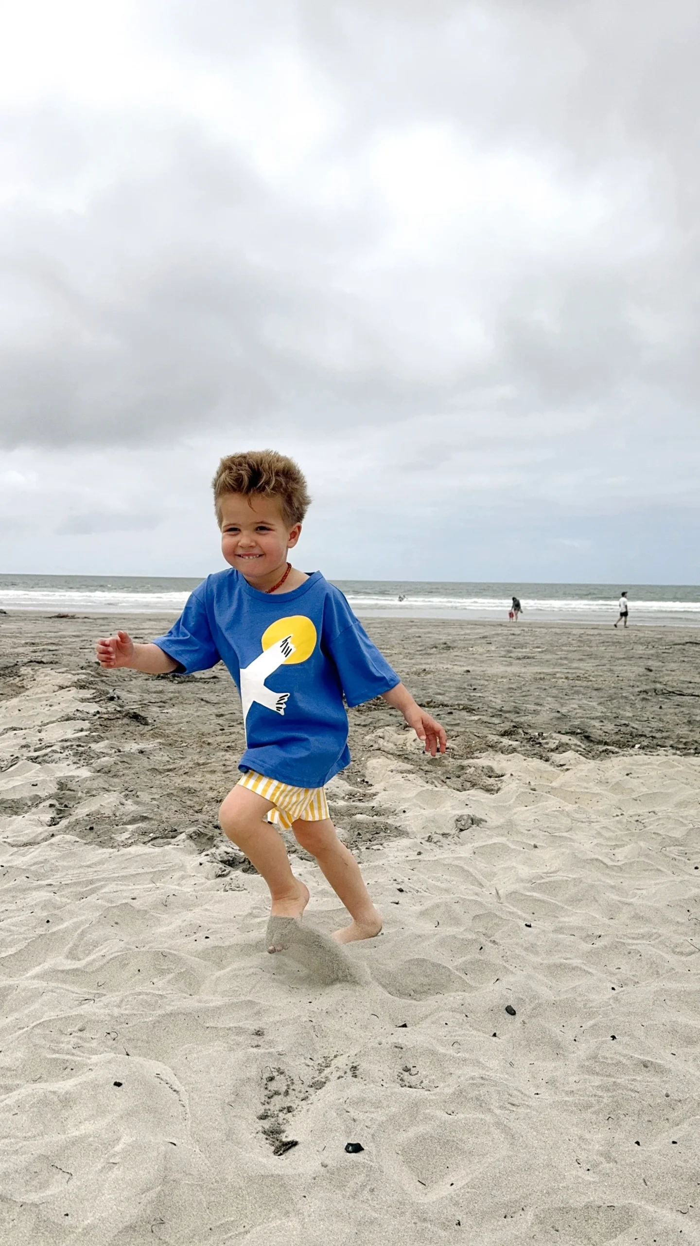 - Coordinate siblings by color family (navy/denim/sand) rather than matching identical outfits—the tee’s seagull ties the story together.