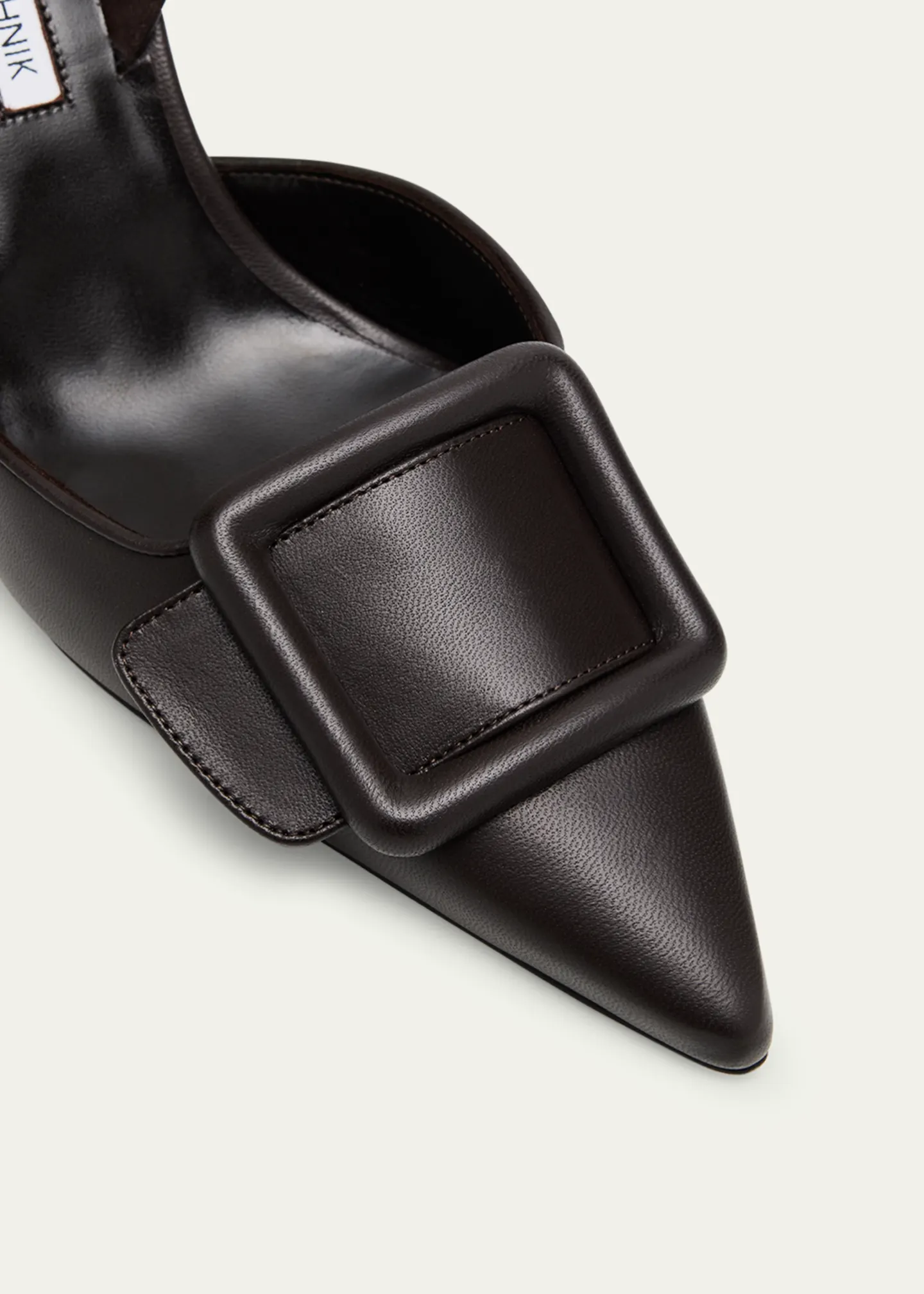 - Manolo Blahnik Maysli Leather Buckle Halter Pumps