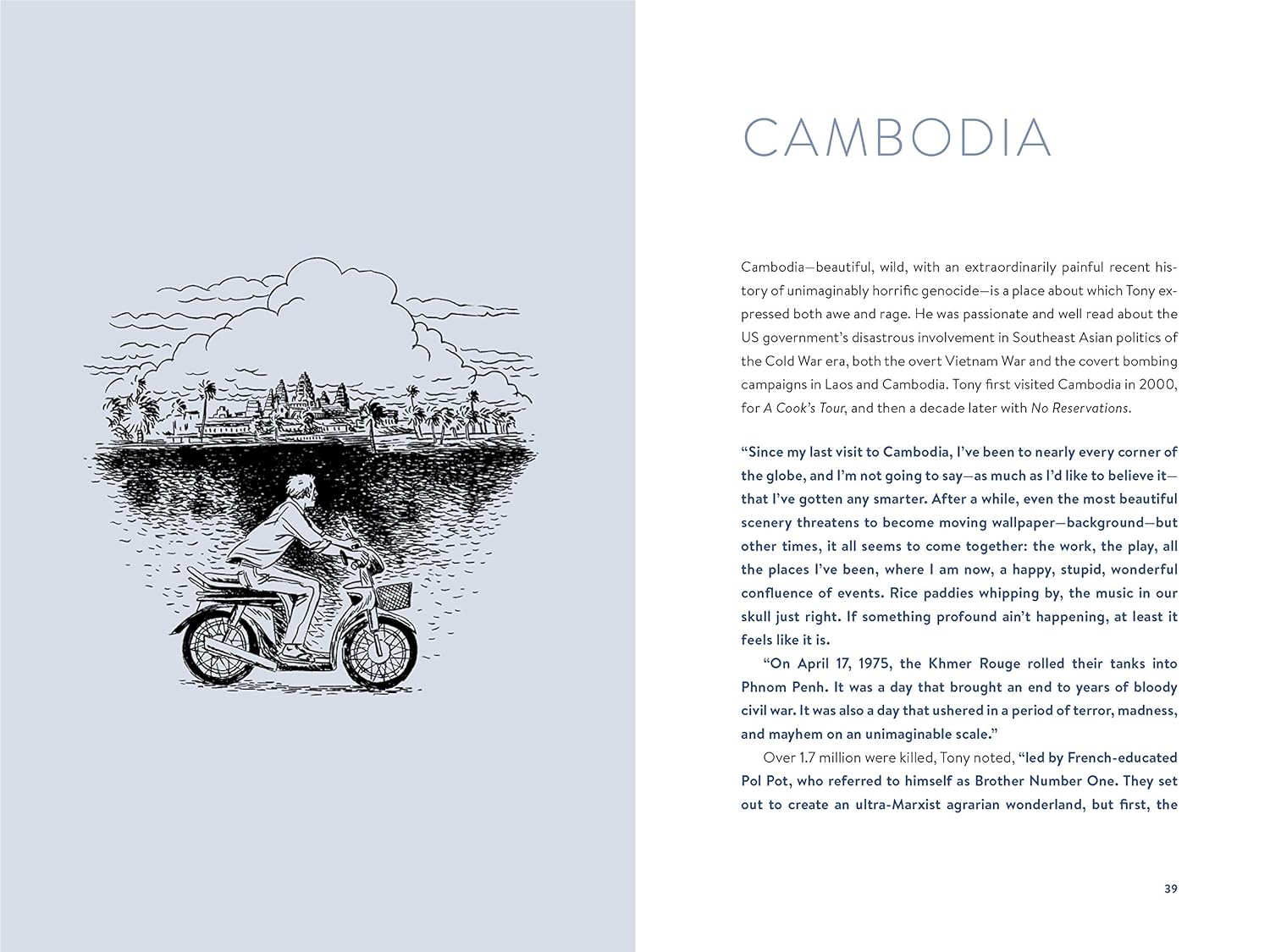 Bourdain’s journeys spanned continents, and this book highlights some of the most memorable places he visited. Each chapter introduces readers to a location, interwoven with personal commentary and practical advice.