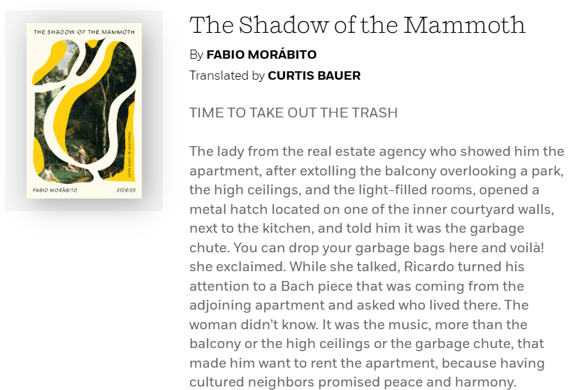 Morábito’s guiding principle, reiterated in The Shadow of the Mammoth, is to “play fair with the reader.” That means his stories unfold without unnecessary scaffolding. There are no over-explanations, no tidy resolutions—only situations that invite us to read with openness, curiosity, and trust.