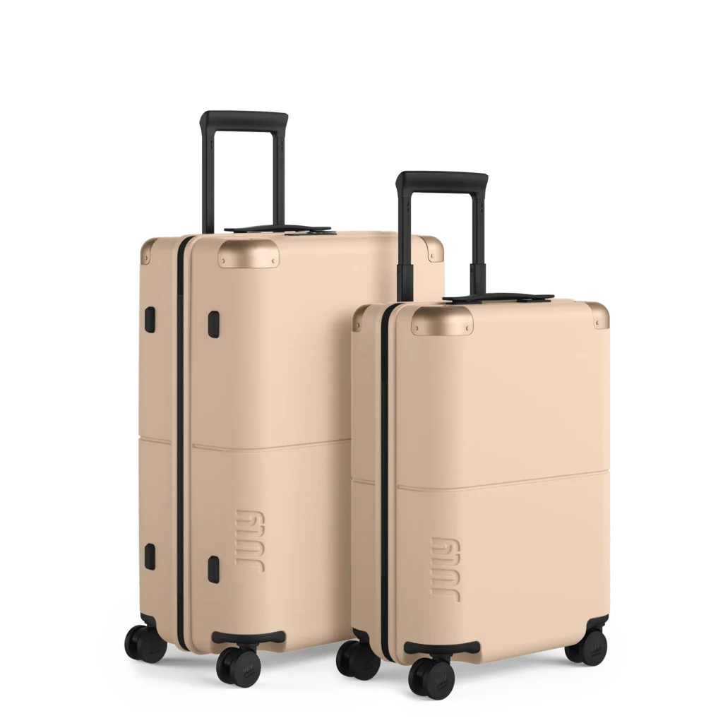 Whether you’re heading for a weekend getaway or a long-haul vacation, this set delivers both form and function. Let’s dive into what makes the Classic Checked Set in Sand a must-have for modern travelers.