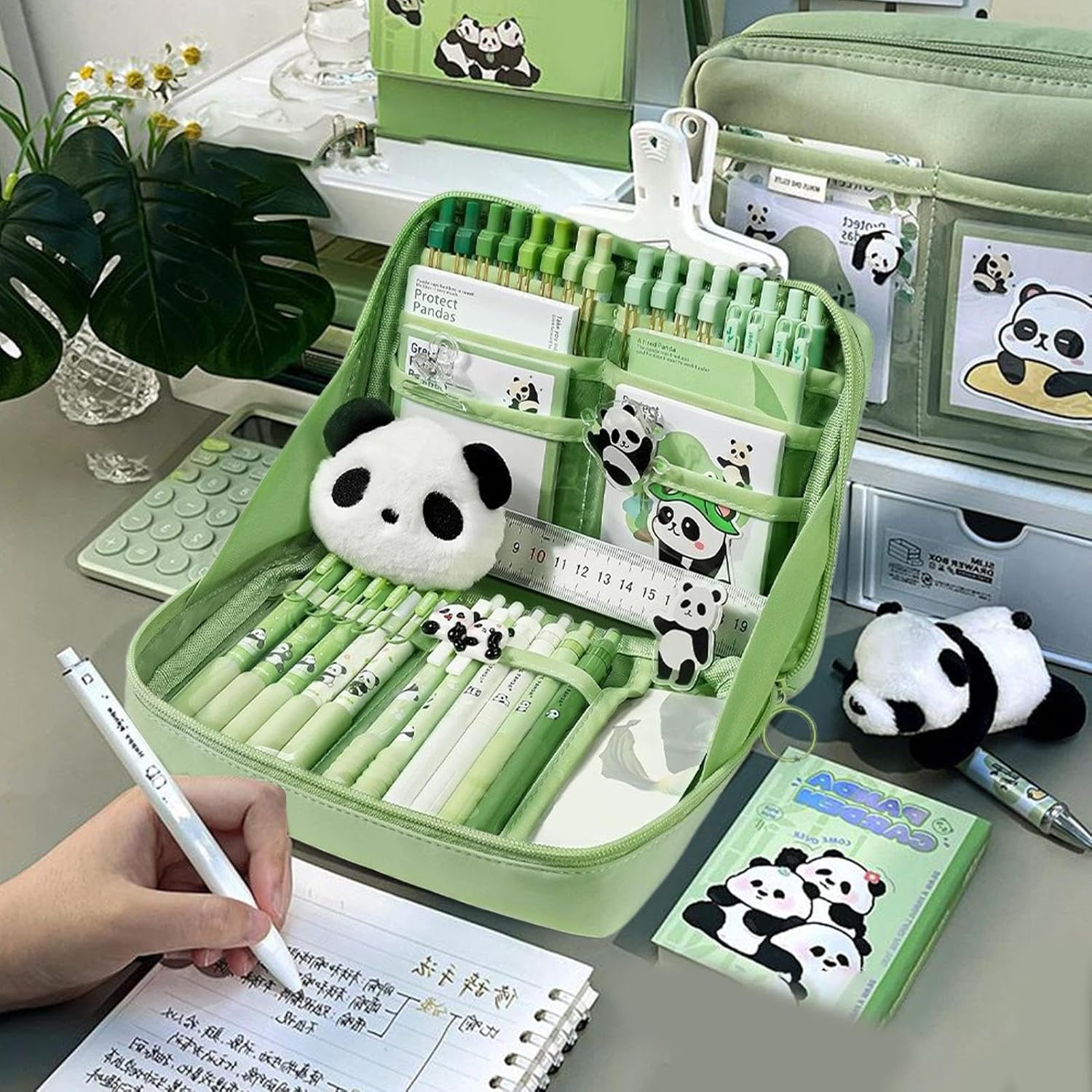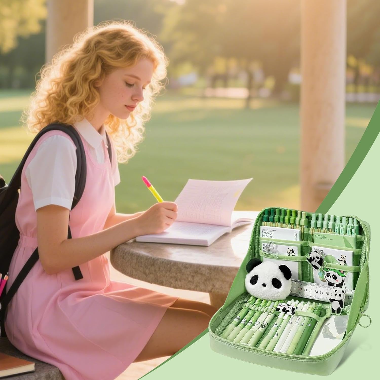 - Work Block (10–15 min): No rummaging—the 118-piece Panda Stationery Set is open and everything visible.