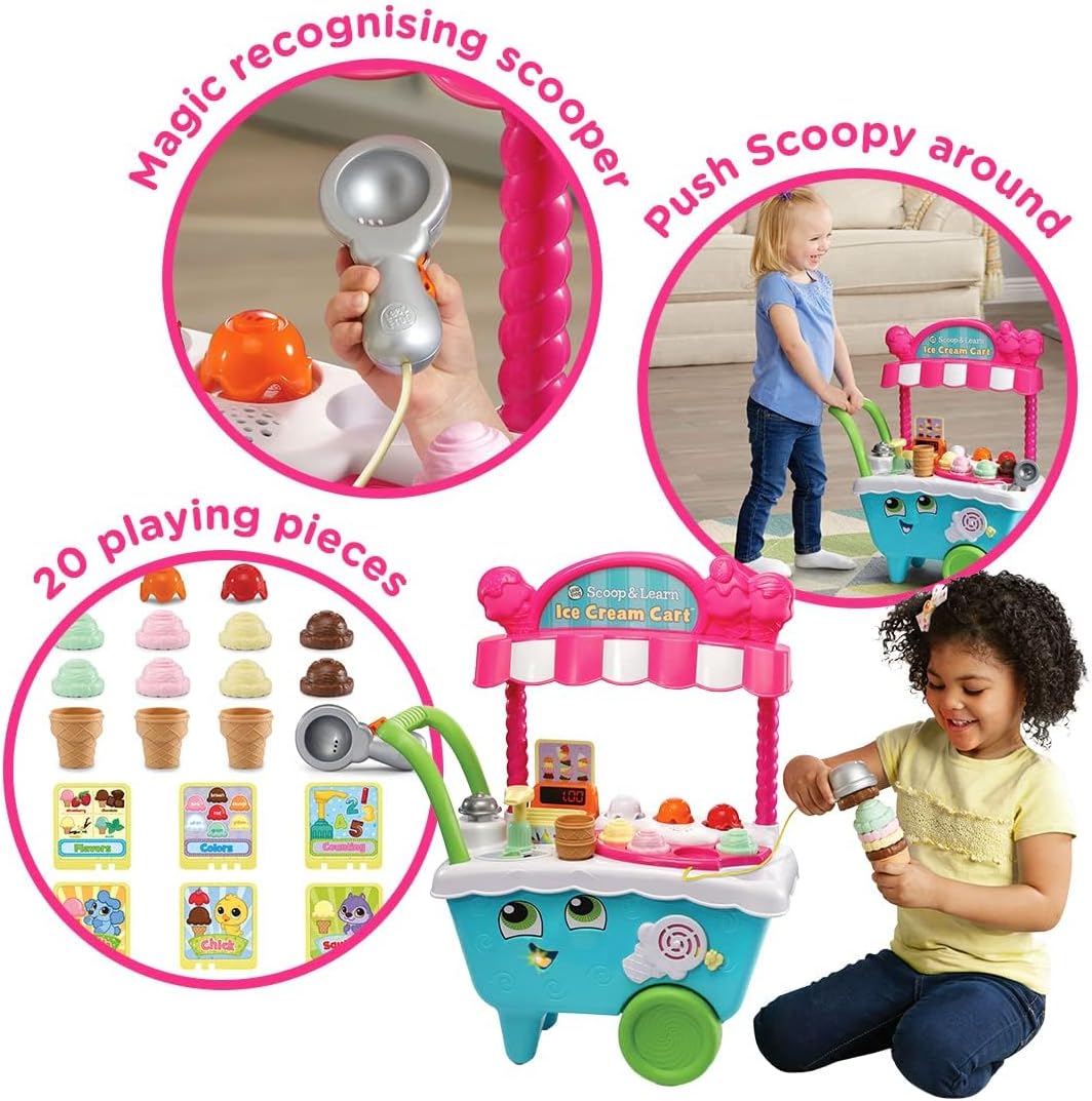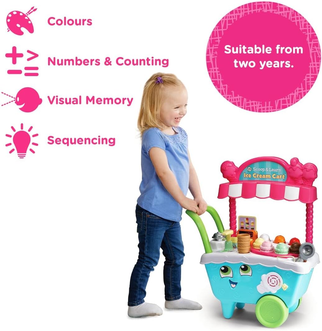 The LeapFrog Scoop & Learn Ice Cream Cart becomes the centrepiece, with accessories around it turning random play into a repeatable routine.
