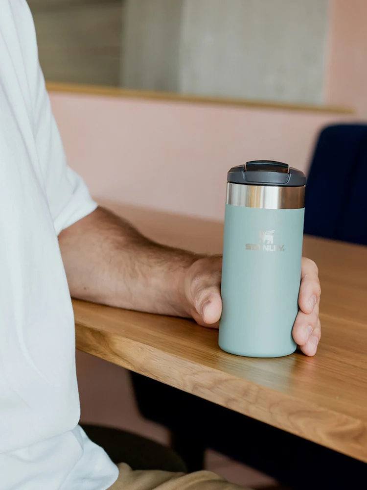 The Stanley AeroLight 0.35L Transit Mug is designed for real commuting—lightweight body, secure top—so you can walk, queue, and hop trains without the drip drama.