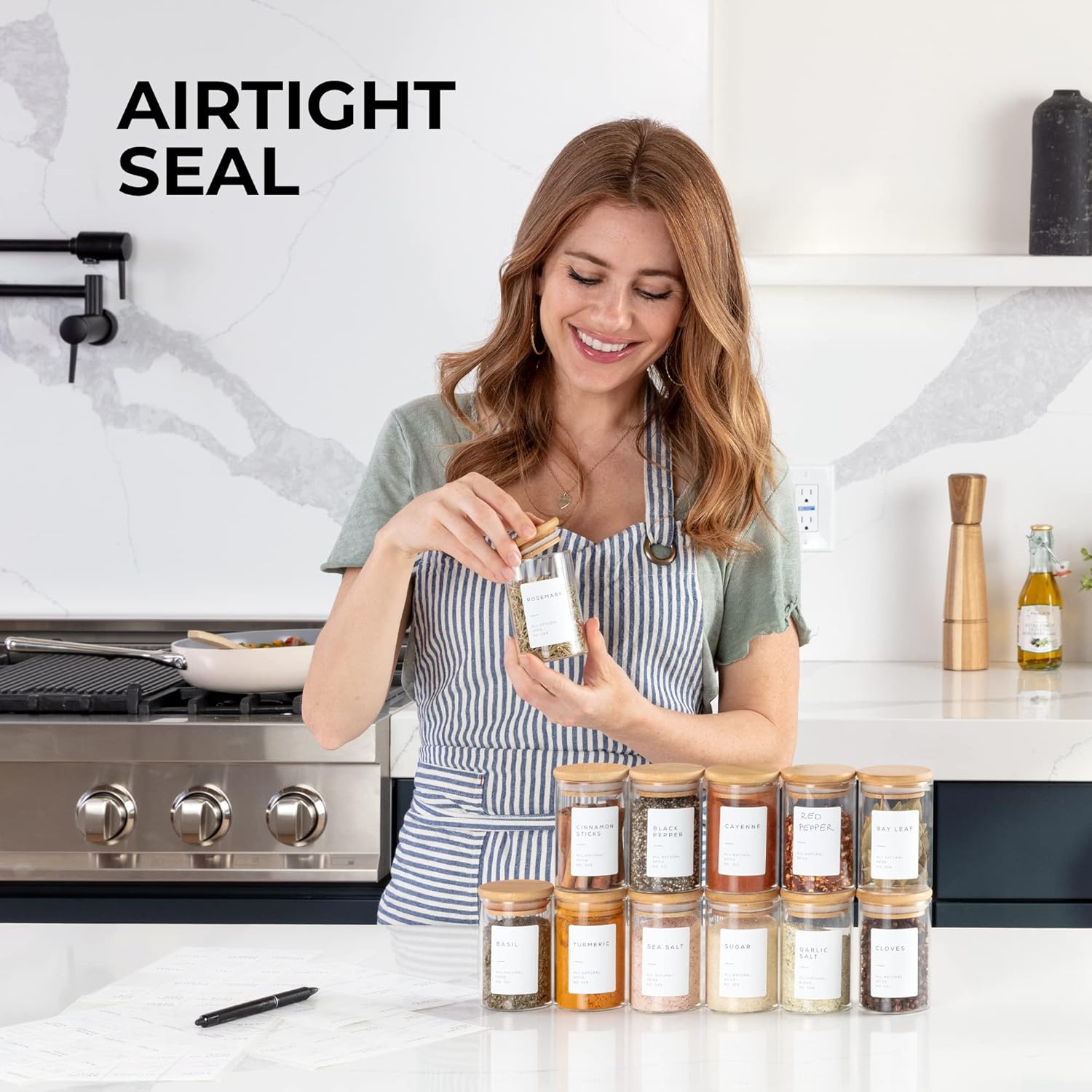 - 12 premium 6oz glass jars for storing herbs and spices.