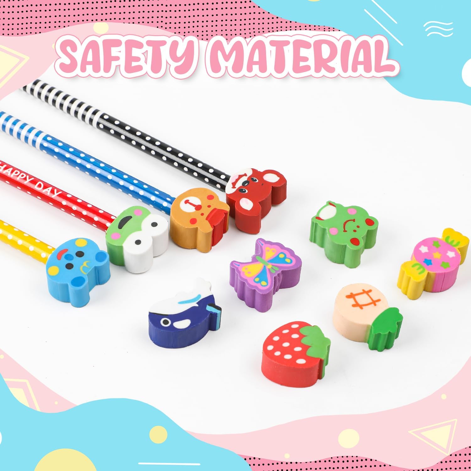 Erasers can either rescue a page or smear it. The attached rubbers on VEYLIN 24 Pieces Pencils with Rubbers are ideal for quick fixes; for larger corrections, keep a white block eraser in the case. Teach this two-step: