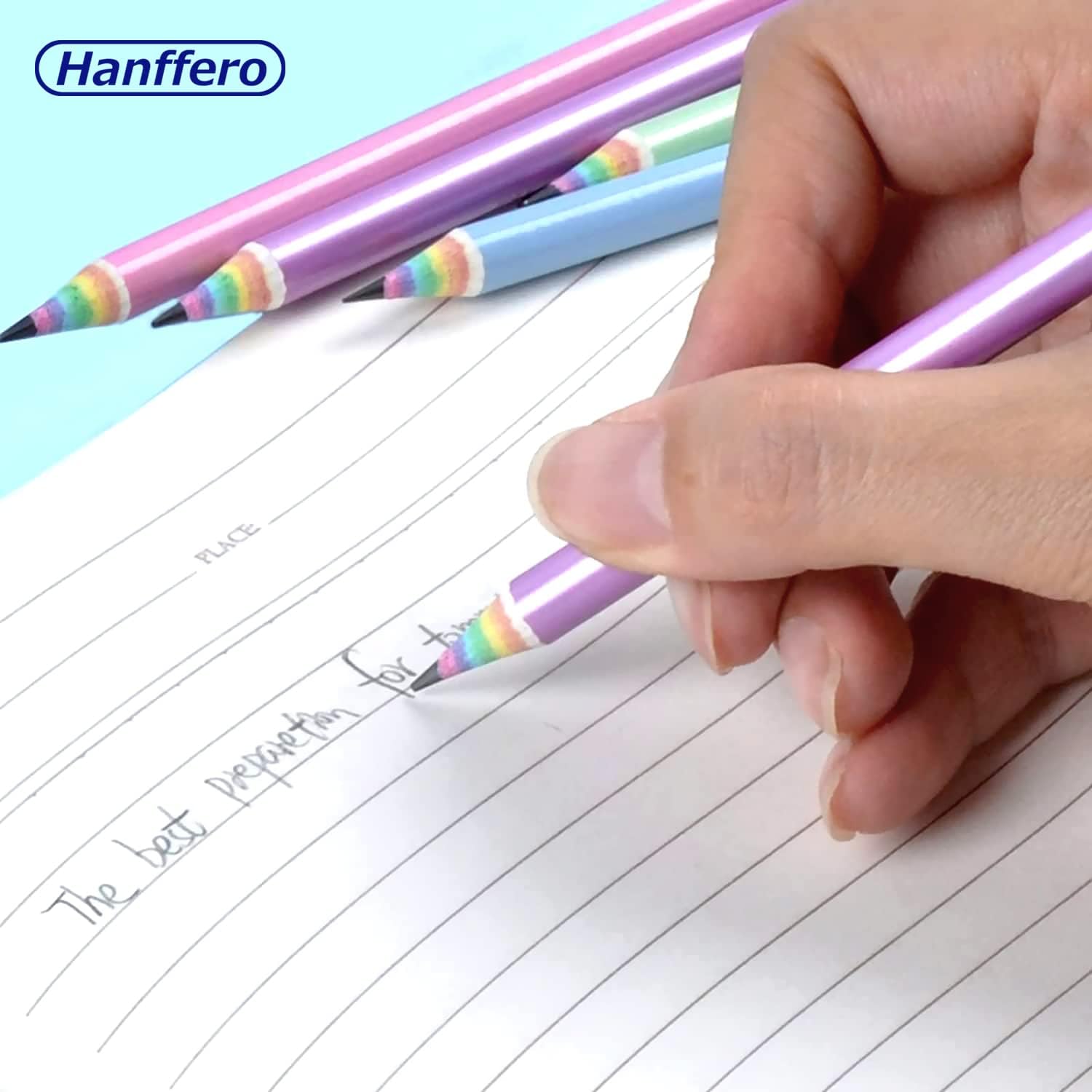 Consistent pigment + smooth cores help younger writers maintain stroke rhythm. Scratchy leads make kids press too hard; mushy wax cores smudge. The balanced feel of Hanffero Haffero Rainbow Pencils encourages a relaxed grip and a steady line, which in turn keeps letter shapes uniform. For left-handers, the quick-laydown pigment reduces smear if you angle paper slightly and lift the wrist.