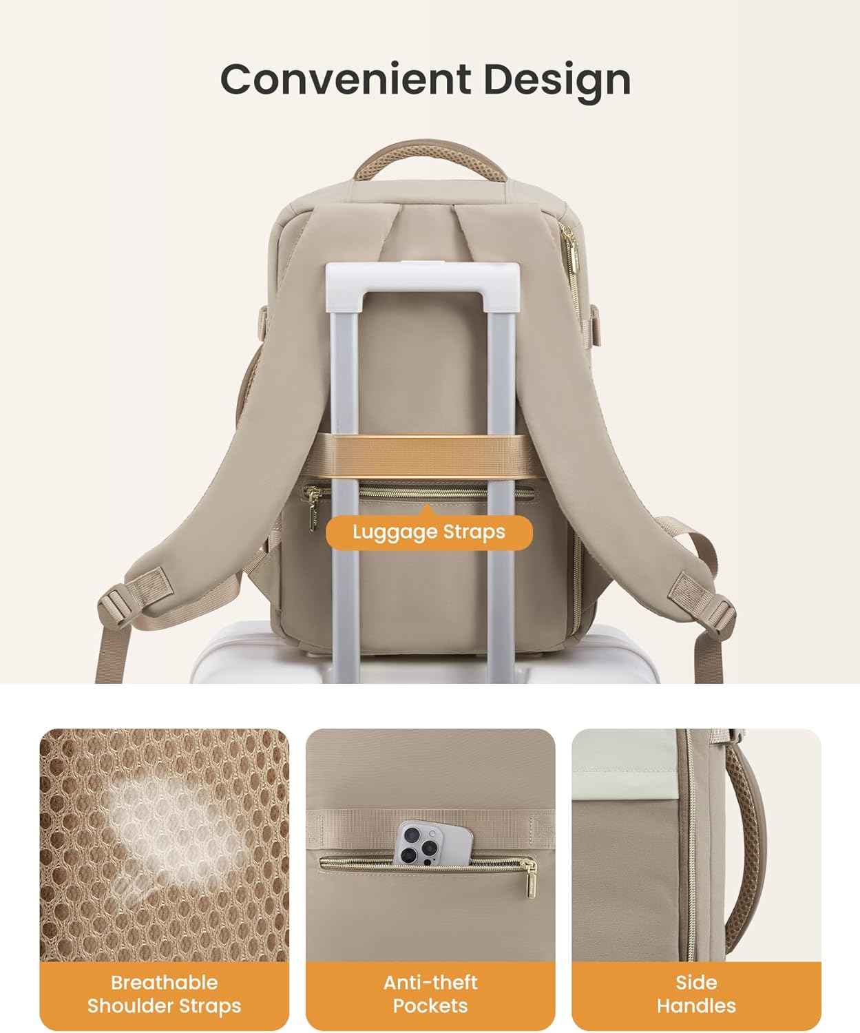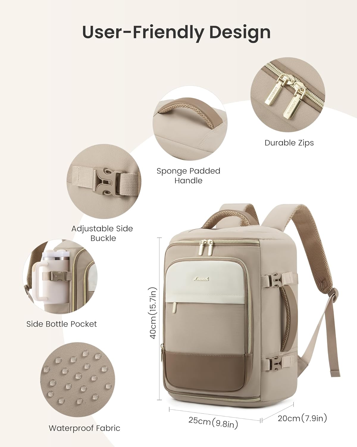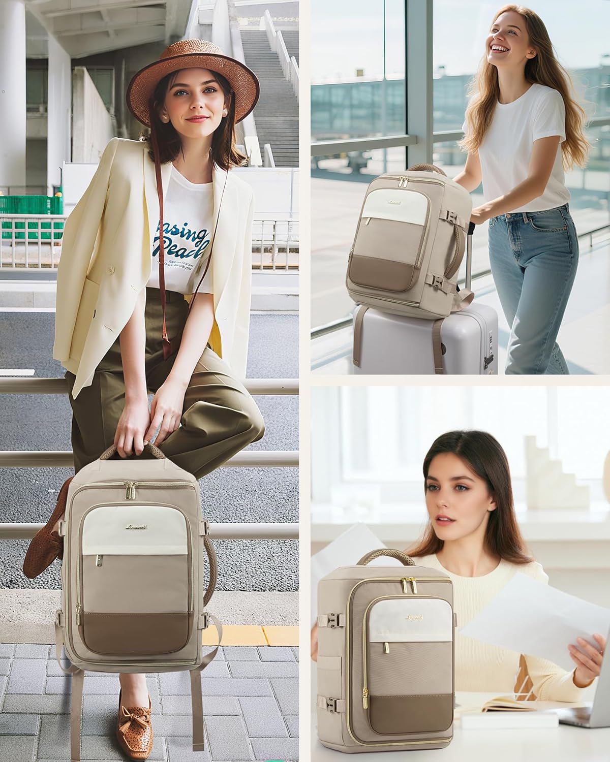 A personal item is part of the outfit. The LOVEVOOK Ryanair Cabin Bag keeps it minimal and city-ready: clean panels, tidy stitching, and a silhouette that pairs with a trench as well as a hoodie. Neutral colorways blend in; discreet hardware doesn’t shout “gym bag.” If you’re traveling with a partner or kids, a consistent look also makes it easier to spot your bag in a stack without resorting to neon.